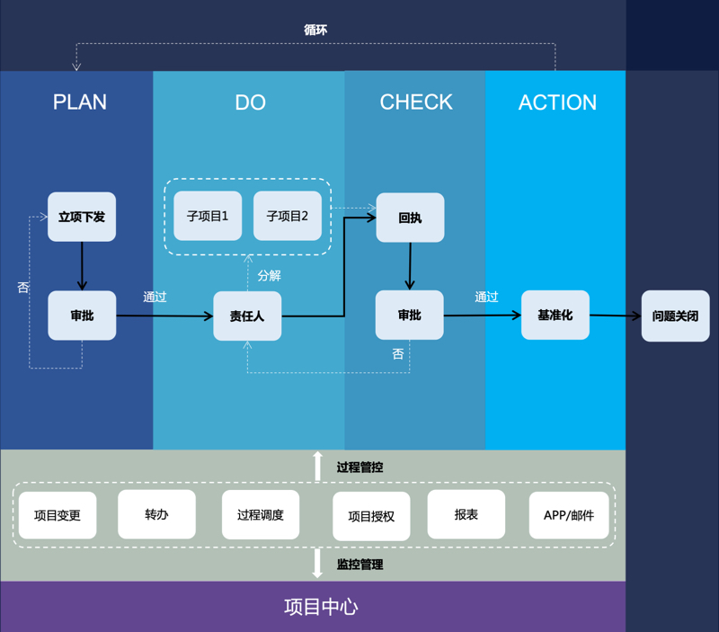 简单快捷高效的项目中心,用于监控、管理、分析项目进展情况,并可对相关项目进行调度、授权、转办等处理